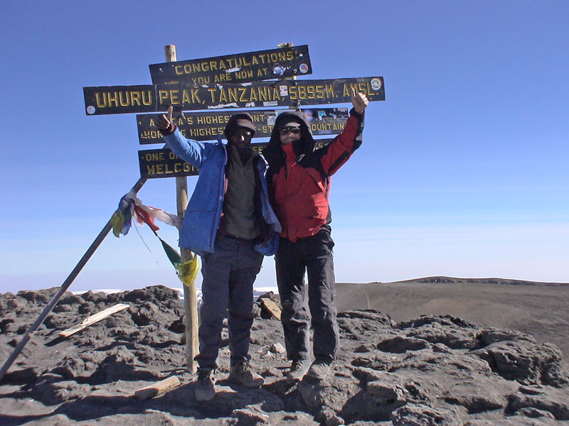 Success on Kilimanjaro. Chris & Naiman reached the summit of Uhuru Peak at 5,896m at 8:30am, Click Here to see the photo. |