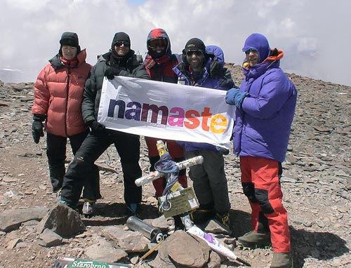 Success on the 2005 Namaste Aconcagua Expedition. The entire team, including Andres, Ase, Chris, Greg and John, reached the summit of South America's biggest mountain on Day 9. Click Here to see the summit photo... |